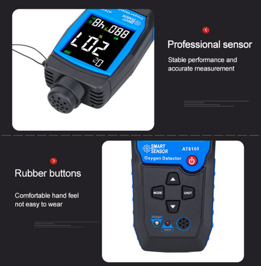 Oxygen Meter Detector O2 Gas Analyzer Reads Monitor In Air Tester 0-25% AT8100