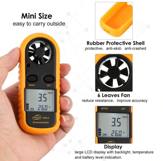 Anemometer Wind Digital Speed Temperature Meter Air Flow Gauge LCD GM816