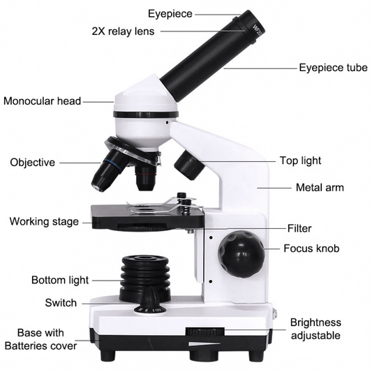 Monocular Microscope 40X-1600X with LED Built in Light and Smartphone Adapter