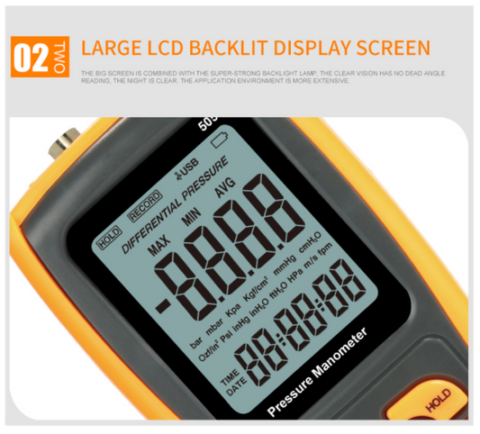 Digital Manometer Air Pressure Meter Gauge Tester Download Logs ±350kPa GM520