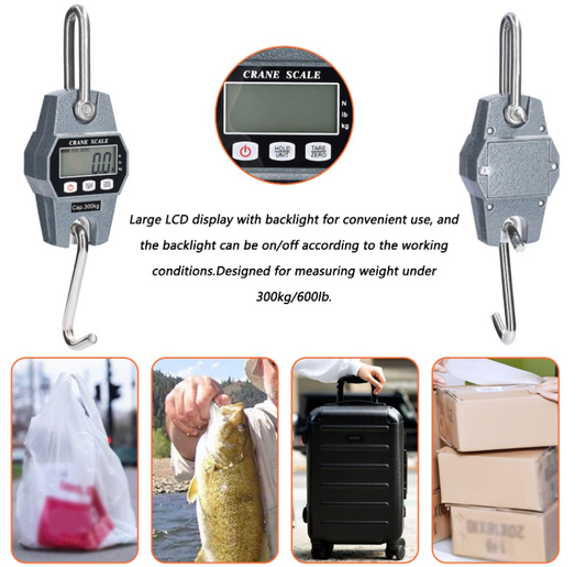 Crane Scale 300kg x 0.1kg Hanging Grey Mini Portable LCD Digital Electronic