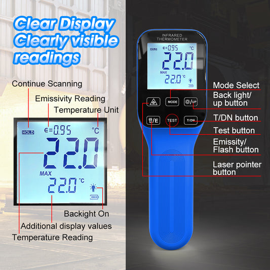 HoldPeak Non-Contact Infrared Thermometer -50℃ to 1600℃ High Accuracy