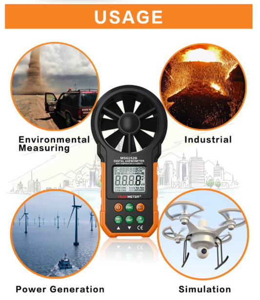 Anemometer Data logger Wind Speed Humidity Temperature Real Time 3 in 1 MS6252B