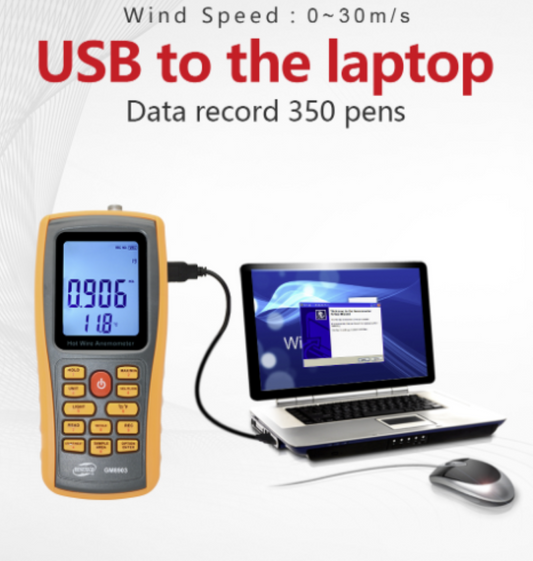 Hot Wire Anemometer Logger Wind Speed Air Flow Temperature Meter Tester GM8903