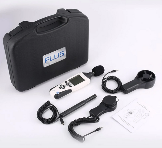 Sound Levels Lux Light Levels Airflow % Humidity Anemometer Wind Temp Meter
