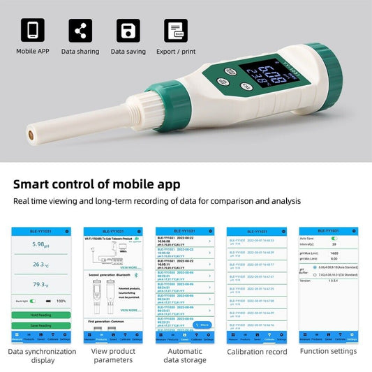 PH Meter Tester Measures Skin Paper Fabric Dough Water Flat Surface & Bluetooth