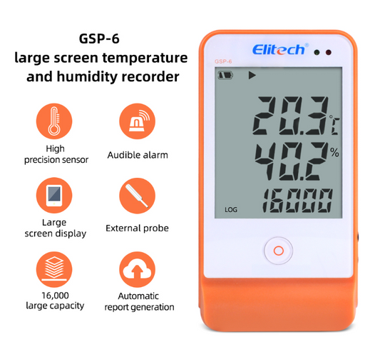 GSP-6 Temperature Humidity Data Logger Recorder Refrigerator Cold Chain 2 Probes
