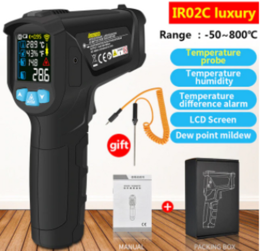 Temperature Humidity Gun -50-800°C Non Contact Infrared IR Thermometer & K Type
